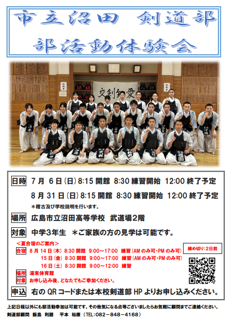 広島市立沼田高等学校剣道部ホームページ開設
